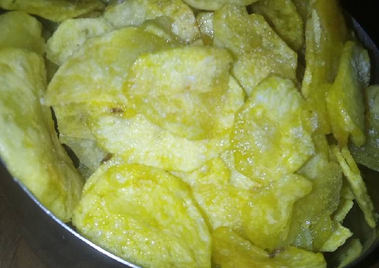 We hope you got insight from reading it, now let's go back to homemade potato crisps recipe. You can cook homemade potato crisps using 3 ingredients and 3 steps. Here is how you cook it.