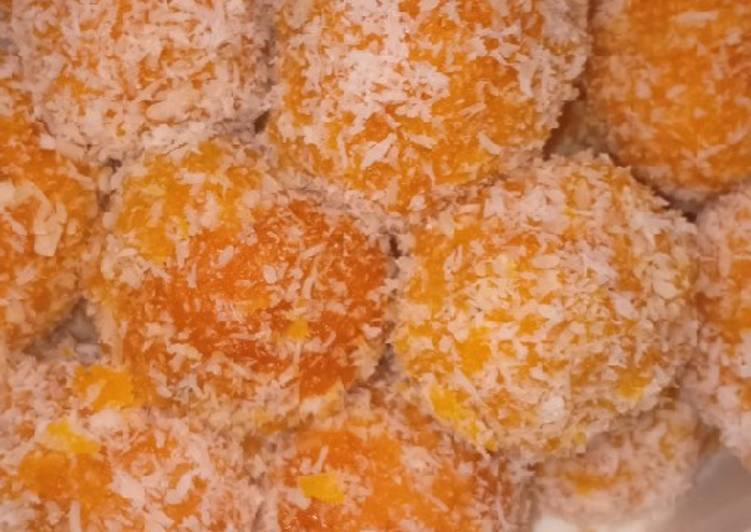 - Prepare 1/2 small bowl of desiccated coconut + extra for rolling.