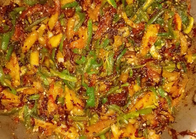 - Sub say pehly bhindi aloo or green chilli ko alag alag fry kar lein..